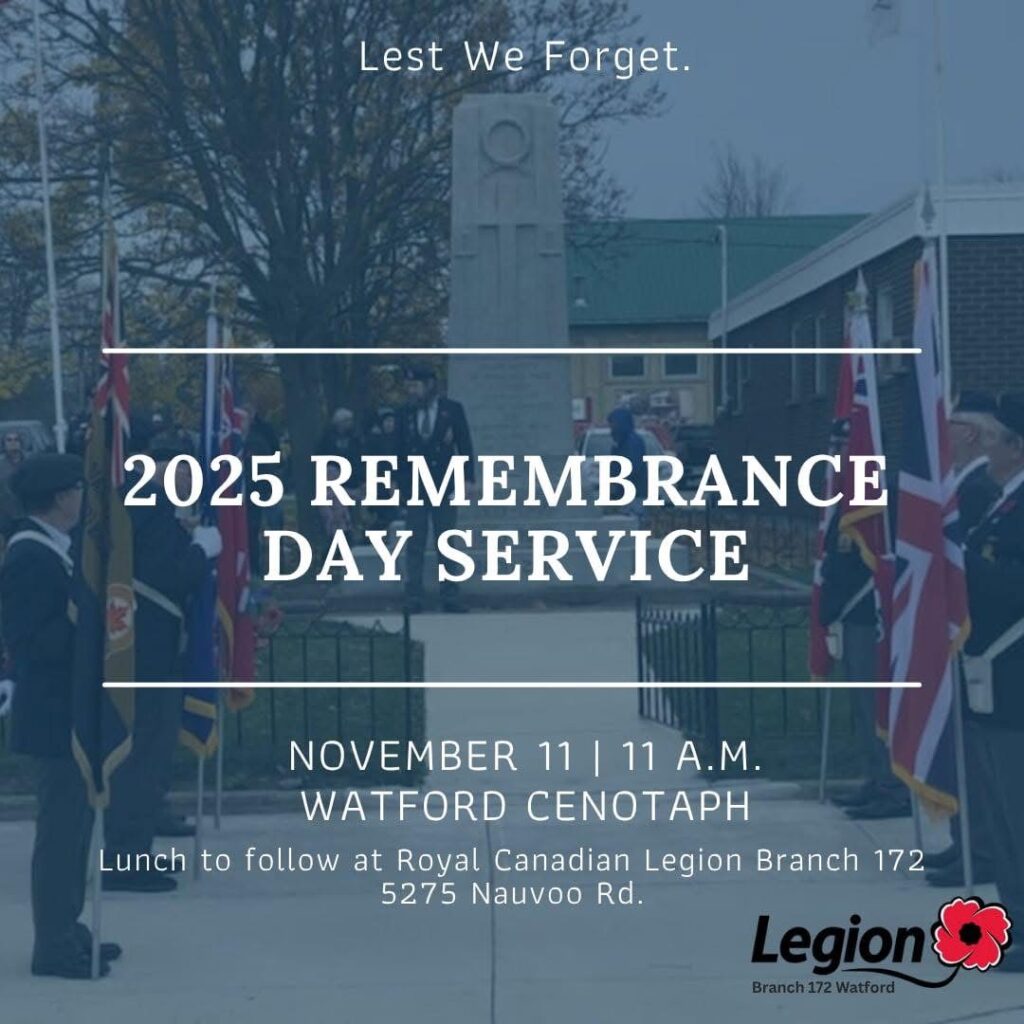 Following the service, everyone is welcome to come back to the legion for a light lunch. Let us all pay tribute to our veterans as a community.